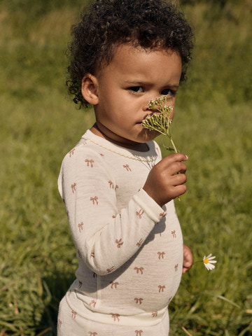 Tilføj bløde og hyggelige uldmodeller til dit barns garderobe og sørg for komfort hele året rundt. Uld er et naturmateriale, der er kendt for sine termiske egenskaber, blødhed og fluffy look. I koldt vejr holder uld på varmen, og på varme dage absorberer det sved, hvilket gør det til et godt valg uanset årstiden. Uld lader huden ånde og bevarer sin isolerende evne, når det er vådt, så kropstemperaturen altid holdes stabil.