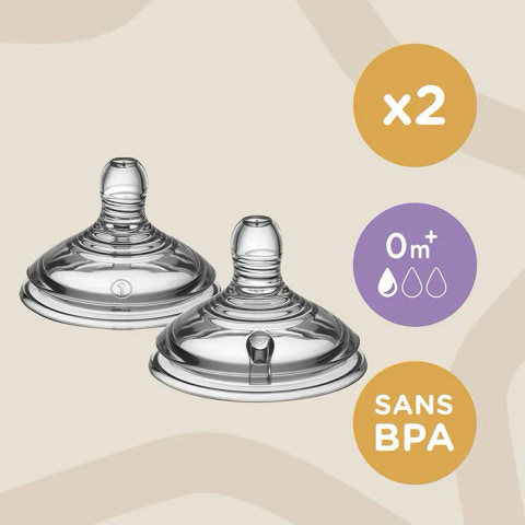Tommee Tippee Natural Start Flaskesutter - Langsomt Flow, 0+ mdr., 2-pak