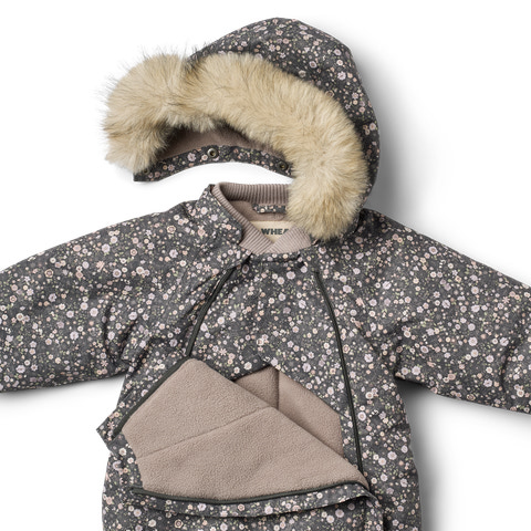 Praktisk flyverdragt med print i åndbart- og vandtæt materiale til din baby. Wheat's tekniske flyverdragter er åndbare, slidstærke og vind- samt vandtætte for at sikre, at dit barn forbliver varmt og tørt i det regnfulde og kolde vejr. Den er desuden smudsafvisende og er derfor nem at rengøre. Dragten er tænkt som overtøj til vinteren, da den er foret med blød fleece, som gør den behagelig for dit barn at have på.