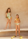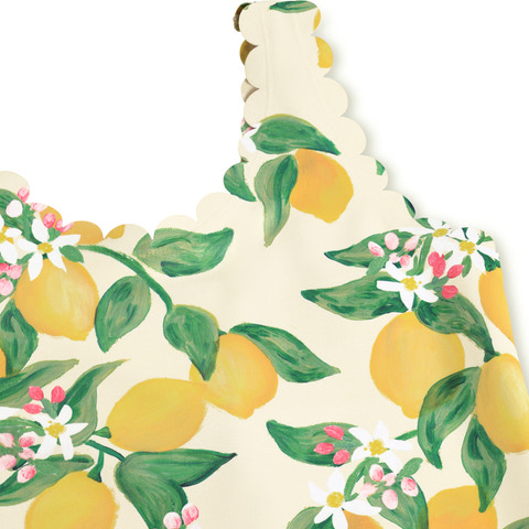 Noelle badedragten fra Molo i citrusprint er en skøn og farverig badedragt, der bringer sommerstemning frem. Den er designet med fine bølgede kanter, som giver et feminint og legende look. Materialet er en blanding af polyester og elastan, hvilket sikrer en behagelig og fleksibel pasform, så barnet kan bevæge sig frit og komfortabelt i vandet. Badedragten er hurtigtørrende og holder formen, selv efter mange ture i poolen eller på stranden. Perfekt til både svømmetræning og leg i solen.