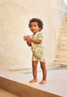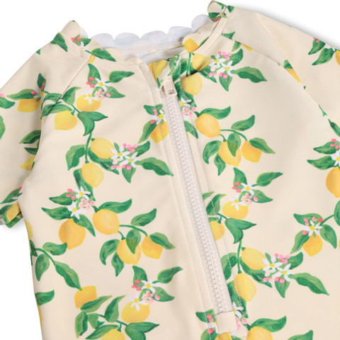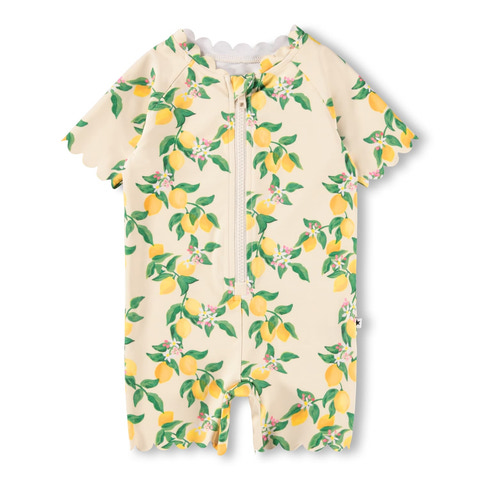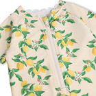 Nolu Badedragt fra Molo i det skønneste Mini Citrus-print er perfekt til sommerens vandleg. Dragten har korte ærmer og ben, hvilket giver masser af bevægelsesfrihed, mens lynlåsen foran gør det nemt at tage den af og på – også når barnet er vådt. Det bløde og fleksible materiale i polyester og elastan sikrer, at dragten sidder behageligt og tørrer hurtigt efter badeturen. De bølgede kanter tilføjer et ekstra sødt touch, og badedragten er ideel til både strand og pool. Perfekt til aktive børn, der elsker at lege i vandet!