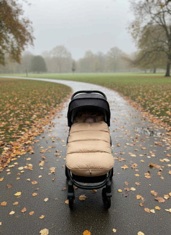 Indvendigt er køreposen foret med superblødt velboa-fleece, der føles som et kram, og fyldt med let, genanvendt, vaskbar polyester, som holder varmen uden at føles tung. Ydersiden er fremstillet af recycled polyester, der beskytter mod vind og fugt, så posen kan bruges hele sæsonen.