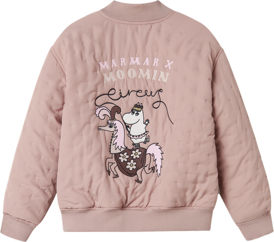 Termojakke til børn med en løs pasform og to udvendige lommer. Termojakken lukkes med lynlås og har et fint broderet Moomin print. Termojakken fungerer perfekt som lun og praktisk overgangstøj.
