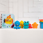 Plask ind i sanseleg og farvegenkendelse med Baby Einstein Ocean Explorers Bath Pals badesæt med 11 dele. Dette spændende badesæt til børn fra 3 måneder og opefter indeholder 5 kopper, 5 dyrelegetøj og en vandtæt bog, der stimulerer sanserne, introducerer årsag og virkning og styrker finmotorikken. De farverige kopper lærer baby om former og årsag og virkning, når de stables, fyldes med vand og hældes ud igen. Små opdagelsesrejsende vil elske at bruge Opus the Octopus som vandstrålelegetøj for at lære om årsag og virkning – alle dyrevennerne er perfekt tilpasset små hænder. Gør badetid til hyggelig kvalitetstid med den vandtætte bog. Baby vil elske at udforske denne bløde, 3-siders bog og opdage dyr, planter og andre oplevelser fra havet. Bogens forside har også en sjov pivelyd, der giver en ekstra overraskelse i badet.