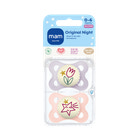 MAM Original Night leveres i en praktisk opbevarings- og steriliseringsæske, som gør det nemt at sterilisere sutterne i mikrobølgeovnen. Med sin selvlysende knop er sutten let at finde i mørket - for lidt lettere nætter.