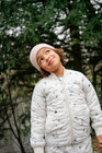 Termojakke med Moomin print med smal pasform og med lommer i siden. Jakken kan ved hjælp af små velcro detaljer bukkes op bagpå, hvis man ikke ønsker at den er længere her. Jakken lukkes med lynlås