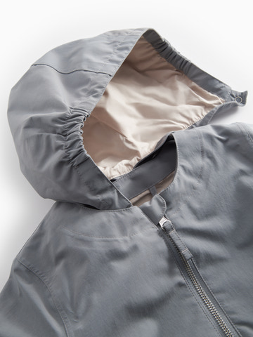 Overgangs parkajakke til børn med to lommer, aftagelig hætte og en god og rummelig pasform med lynlåslukning foran. Parkajakken er både er vind og vandtæt og perfekt som en forårsjakke.