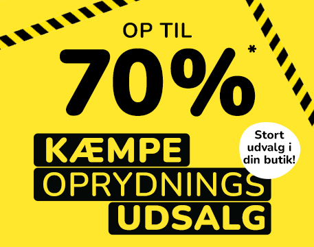 Gælder så længe lager haves. Udvalget kan variere fra butik til butik.Oprydningsudsalget gælder ikke på skarpe priser, multibuy, medlemstilbudog varer mærket med prismatch.