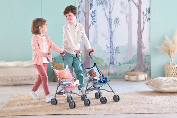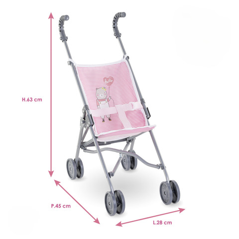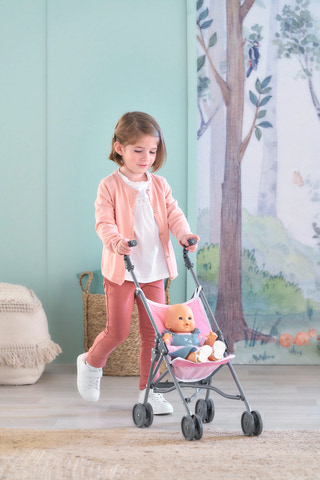 Denne praktiske paraplyklapvogn er designet til dukker med en størrelse på 36-42 cm og er inspireret af rigtige babyklapvogne. Den er let og foldbar, hvilket gør den nem at tage med sig, uanset hvor legen fører hen. Klapvognen er udstyret med to sikkerhedslåse, der forhindrer, at små fingre kommer i klemme, hvilket sikrer en tryg og sikker leg.