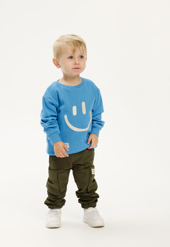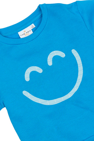 Charmerende baby-sweatshirt fra THE NEW siblings med et glad smiley-print i en skøn lyseblå farve. Denne sweatshirt er perfekt til hverdagsbrug og hyggelige weekender. Kombinér den med sweatpants for et afslappet look eller med jeans for et mere casual outfit.