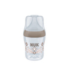 Flaskesutten på den nye NUK Perfect Match sutteflaske er utrolig blød og fleksibel. Den glatte overflade minder om moderens hud og formen efterligner moderens bryst, hvilket gør at barnet instinktivt ved hvordan det skal hvile læberne mod sutten. Når barnet begynder at sutte, ligger flaskesutten blødt mod læber og gane på en naturlig måde. Suttens form gør det nemt for din baby at sutte på den måde, jordemødre og børnelæger anbefaler*: med åben mund og læberne omkring brystet/sutten. Komfortabel flaskeform og praktisk temperaturindikator Flasken har en tilspidset form og er behagelig at holde under fodring. Takket være den brede åbning er det nemt at hælde både væske og pulver i uden at spilde. Den patenterede temperaturindikator viser, hvornår indholdet har den rigtige temperatur. Hvis indholdet er for varmt, skifter indikatoren farve fra blå til hvid. Husk at dette kun er et hjælpemiddel, tjek altid temperaturen inden du giver flasken til dit barn. Tilpasser sig barnets mund Så snart din baby begynder at sutte, tilpasser den bløde flaskesut formen på ganen og læberne. Dette bekræftes også af 95 % af mødrene i den uafhængige undersøgelse*. Takket være den blidt tilspidsede form, vil dit barn instinktivt finde det optimale sted for munden at omgive sutten, så det kan drikke på en rolig og afslappet måde. Dette bemærkes også af 97 % af mødrene*. 98 % babyaccept* En uafhængig markedsundersøgelse i Tyskland i 2023 viser, at hele 98 % af børn accepterer NUK Perfect Match. Anti-kolik Alle flaskesutter har en Anti-Kolik ventil, som giver et naturligt flow uden at skulle holde pause. Dette minimerer risikoen for at barnet sluger luft når det spiser. Ekstra fleksibel og blød flaskesutt med ordentlig læbestøtte Flaskesuttens materiale er usædvanligt tyndt og derfor meget fleksibelt. Overfladen er blød og glat, ligesom mors hud. Læbestøtten føles som blød hud mod dit barns læber. Flaskesuttens design gør, at kun babys læber rører ved sutten. Det betyder, at barnets følsomme hud omkring munden er fri, luften kan cirkulere frit og hudirritationer forhindres. Fås i flere størrelser Perfect Match sutteflaske fås i 2 størrelser: 150 ml (inkl. flaskesut størrelse S) og 260 ml (inkl. flaskesut størrelse M). Perfect Match flaskesut fås i 3 størrelser: S, M og U. Med størrelse U kan din baby selv regulere drikkeflowet. • Naturlig flaskefodring • Tilpasser sig barnets mund • Temperaturindikator • Lavet i Tyskland • BPA-fri *Uafhængig markedsundersøgelse, Tyskland, 2023
