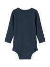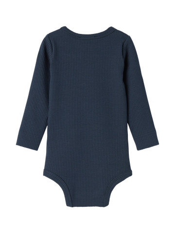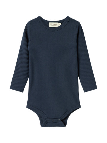 Enkel langærmet bodystocking, der bliver lukket med trykknapper mellem benene for nem bleskiftning. Ribstrikket med elastan