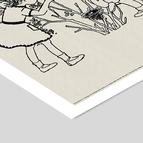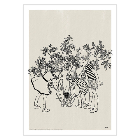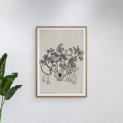 Denne smukke plakat med motiv fra Astrid Lindgrens elskede univers bringer nostalgi og eventyr ind i hjemmet. Motivet viser Lotta og hendes venner, der nysgerrigt kigger på en fuglerede, og illustrationen er udført i en enkel, sort-hvid streg, der passer ind i de fleste indretninger. Plakaten måler 50x70 cm og er ideel til at skabe en hyggelig stemning på børneværelset, men kan også pynte i stuen eller gangen. En oplagt gaveidé til både børn og voksne, der elsker Astrid Lindgrens tidløse fortællinger og klassiske illustrationer.