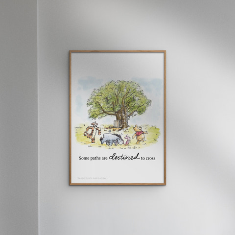 kundeservice@babysam.dkDenne plakat fra Poster & Frame bringer hygge og nostalgi ind i hjemmet med et elsket motiv fra Peter Plys universet. Her ses Peter Plys, Grisling, Æsel og Tigerdyret samlet under det store træ, hvor venskab og eventyr blomstrer. Den fine akvarel-stil og det inspirerende citat gør plakaten til et oplagt valg til børneværelset, men den vil også pynte i stuen eller som en gave til en, du holder af. Plakaten er trykt på kvalitetsmateriale, så farverne står flotte og klare, og den officielle Disney-licens sikrer, at du får et produkt med autentisk udtryk og høj standard.