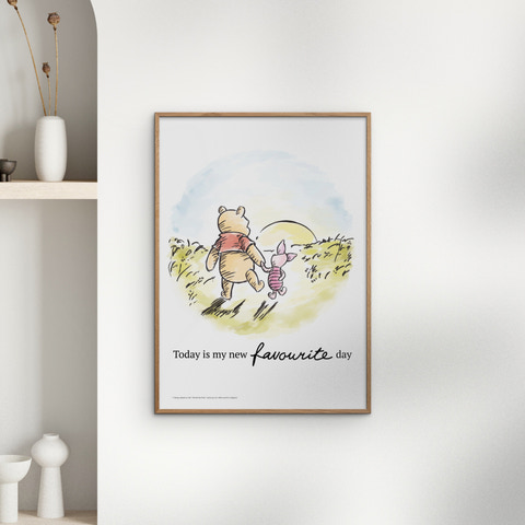 Denne plakat med Peter Plys og Grisling, der går hånd i hånd mod solnedgangen, spreder varme og glæde i ethvert rum. Det smukke motiv og det inspirerende citat minder om venskabets betydning og at værdsætte nuet. Plakaten er trykt på kvalitetsmateriale, så farverne fremstår klare og motiverne tydelige. Den passer perfekt til børneværelset, men kan også pynte i stuen eller som en sød gave til en du holder af. Med sit tidløse design og positive budskab skaber den en hyggelig stemning og bringer smilet frem hos både børn og voksne.