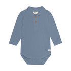 Stilren body fra EN FANT med klassisk polokrave. Denne ensfarvede body er fremstillet i en blød bomuldskvalitet, der føles behagelig mod huden. Den har lange ærmer, en tidløs polokrave og lukkes praktisk med trykknapper mellem benene – perfekt til både hverdag og pænere anledninger.