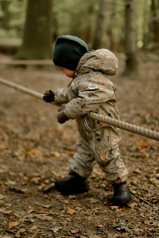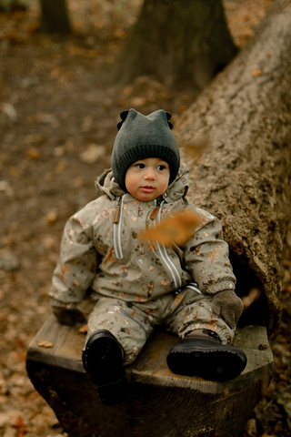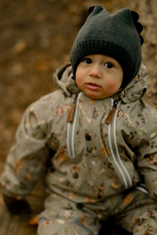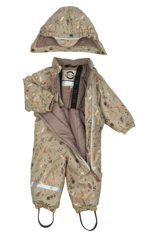 Denne praktiske dragt er lavet af 100% genanvendt polyester med blød polyurethan (PU) coating, der holder barnet varmt og tørt. Den er nem at tage på/af, og beskytter barnet mod vand og vind med minimal begrænsning af barnets bevægelighed. Den har en fluorfri vand- og smudsafvisende overflade, så når legen er ovre, og dragten er dækket af mudder, kan du let rengøre den med en fugtig klud.