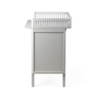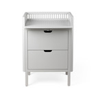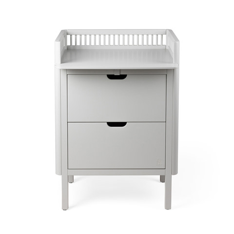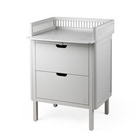 kundeservice@babysam.dkSebra Puslebordet er et elegant, funktionelt og dansk-designet 2-i-1 møbel, som kommer med en kommode, en pusleplade og henholdsvis to skuffer. Puslebordet er designet med et skandinavisk og tidløst udtryk, der harmonerer med de øvrige møbler fra Sebra’s klassiske møbelkollektion. Et funktionelt, sikkert og klassisk puslebord uden uønsket kemi og med lang levetid til børneværelset, soveværelset, badeværelse eller et andet sted i hjemmet. Her ses Sebra Puslebordet med skuffer og i farven Classic White. Sebra Puslebordet med skuffer er et puslebord, der let kan forvandles til et klassisk opbevaringsmøbel, når behovet for puslebordet hører op. Puslepladen er lukket bagtil og til siderne og fremstår med en forhøjet kant med små runde tremmer, som er med til at give puslebordet det karakteristiske udtryk, som Sebra Sengen er så kendt og elsket for. Puslepladen (indvendige mål) har en dybde på 66 cm og en bredde på 69 cm, hvilket giver plads til en puslehynde og andre puslefornødenheder, som kræves i forbindelse med et bleskift, tøjskift eller blot en hyggestund med babypludder. De to skuffer giver mulighed for opbevaring at tøj, bleer, legetøj eller hvad der nu måtte være behov for. Skufferne er udstyret med ”softluk”, som sikrer, at skufferne lukkes stille og roligt. Derved minimeres risikoen for at få fingrene i klemme, og det er en god ting på netop børneværelset, hvor små fingre ikke altid er så hurtige, som de store. Den praktiske forvandling fra puslebord til opbevaringsmøbel sker ved, at puslepladen nemt fjernes fra underdelen. Denne egenskab gør, at det ikke er nødvendigt at opmagasinere et komplet puslebord eller skille sig af med puslebordet i perioden imellem blebørn - eller når behovet for et puslebord blot forsvinder helt. Det giver puslebordet en ekstra lang levetid og et produkt, der kan vokse med barnet eller dets søskende - et møbel, der let kan gå i arv. Fronterne fremstår med udskårne greb, der sammen med kommodens afrundede hjørner er med til at øge sikkerheden på børneværelset – ingen skarpe kanter, som kan give ridser og skrammer. Puslebordet er på fire ben, hvilket sikrer et lettere og mindre bastant udtryk end et puslebord uden ben. Det giver naturligvis også mulighed for opbevaring under kommoden, hvis behovet er der.