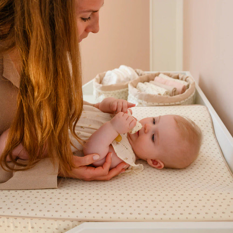 Puslepuden fra Cam Cam Copenhagen kombinerer funktionalitet og æstetik, så både forældre og baby får en tryg og behagelig pusleoplevelse. Puden har en blød og støttende skumkerne, der sikrer komfort for barnet under bleskift, mens de høje kanter giver ekstra sikkerhed og tryghed. Betrækket er fremstillet i økologisk bomuld og har en praktisk vandafvisende coating, så små uheld nemt kan tørres af med en fugtig klud. Det aftagelige betræk gør det let at holde puslepuden ren og hygiejnisk, da det kan lynes af og vaskes i maskinen. Puslepuden passer perfekt ind i det moderne børneværelse og er designet med omtanke for både komfort og stil.