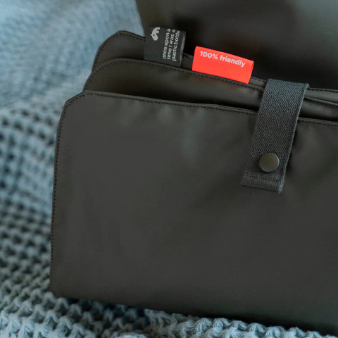 Skifteunderlag: 100% genanvendt polyester med PU-belægning.