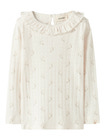 Rachello Ria Bluse fra Lil' Atelier er en yndig og komfortabel bluse til de mindste. Den er fremstillet i en blød blanding af modal og økologisk bomuld, hvilket sikrer en behagelig følelse mod huden og god åndbarhed. Blusen har et sødt, diskret blomsterprint og en fin flæsekrave, der giver et feminint udtryk. Den lange ærmer gør den velegnet til både hverdag og festlige lejligheder, og den praktiske knaplukning i nakken gør det nemt at tage blusen af og på. Perfekt til at kombinere med bukser eller nederdel for et sødt og stilfuldt look.