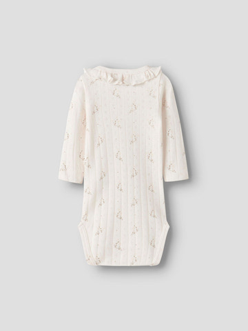Rachello Ria Langærmet Body fra Lil' Atelier er det perfekte valg til de mindste, når komfort og stil skal gå hånd i hånd. Bodyen er lavet i en blød og strækbar blanding af modal og økologisk bomuld, som føles ekstra behagelig mod barnets hud. Det langærmede design og de fine blomsterdetaljer giver et sødt og klassisk udtryk, mens den elegante flæsekrave tilføjer et feminint touch. Praktiske trykknapper i bunden gør det nemt at skifte ble, og materialet sikrer god bevægelsesfrihed hele dagen. Perfekt til både hverdag og festlige lejligheder.