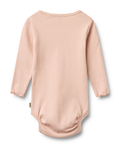 Wheats basis body er en sand klassiker i garderoben, når det kommer til småbørn. Denne body har trykknapper på den ene skulder samt i bunden for bedre komfort, når du skal klæde dit barn på. Brug bodyen som den inderste del i ethvert outfit, da den er blød at have tæt på huden. Man kan style bodyen afhængigt af vejr og årstid ved blandt andet at bruge den under en kjole, til et par matchende leggings eller på kølige dage med en sweater/strik udover.