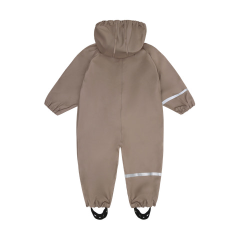 Super praktisk CeLaVi regn dragt i ensfarvet, slidstærkt PU materiale med den søde CeLaVi elefant på brystet. Dragten er vind- og vandtæt med svejsede sømme, og har et målt vandsøjletryk på 5000 mm. Praktisk elastikkant ved håndled og ankler, samt justerbare elastiske støvlestropper i bunden af benene. Dragten lukkes foran med lynlås og trykknapper. Refleksstribe på højre arm og ben, samt aftagelig hætte med trykknapper.