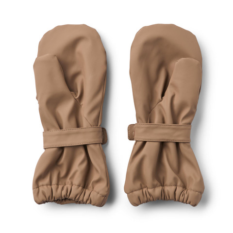 Wheat's klassiske regnluffer er både behagelige og praktiske at have på. De er vandtætte og har et blødt fleecefoer, som gør dem perfekte til de evigt skiftende sæsoner. Regnlufferne har en justerbar velcrostrop om håndleddet for at sikre, at vanterne bliver på plads. Der er også elastikker ved kanterne, så de kan fastgøres udenpå overtøjets ærmer.