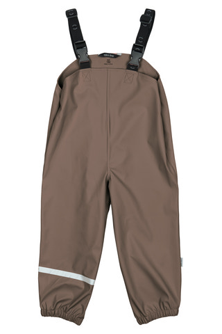 Placer de justerbare fodstropper under støvlerne, for at holde fødderne tørre og undgå at bukserne glider op. Selerne kan tilpasses efter behov, og så har sættet har et indvendigt navneskilt med plads til mere end ét navn, så giv det gerne videre, så endnu et barn kan få glæde af det.