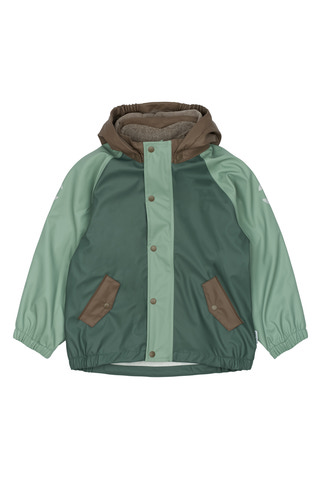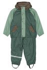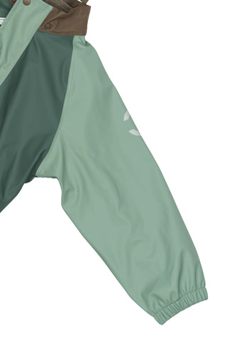 Varmt PU regntøj fra mikk-line, der er skabt til at børn kan trodse regnen og have det sjovt med at hoppe i vandpytter, glide ned ad den våde rutsjebane, lege i den våde sandkasse osv. Sættet består af en vandtæt regnjakke og regnbukser, der begge er lavet af genanvendt og blødt PU-materiale.