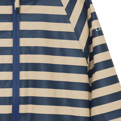 kundeservice@babysam.dkRegndragt i PU fra CeLaVi. Regndragten har et all-over print. Der er smalle refleksstriber rundt om den ene arm og det ene ben. Øverst på den ene arm og bagpå hætten er logoet refleksprintet. CeLaVi regndragten har en aftagelig hætte, som er fastgjort med trykknapper på halskraven. Den lukkes foran med en vandtæt lynlås. Ansigtsåbningen på hætten, ærmerne og taljen har elastik for en bedre pasform. Bukserne har praktiske og justerbare elastikstropper, som kan trækkes nedenunder fodtøjet.