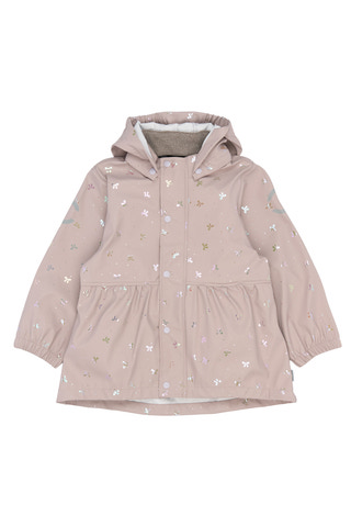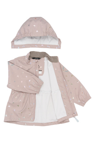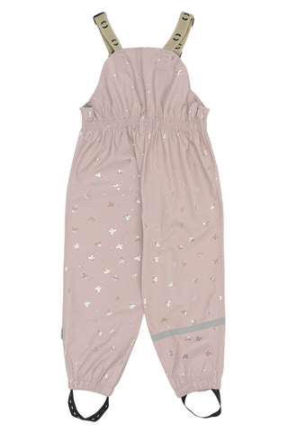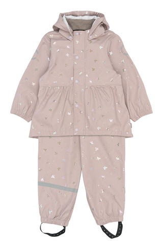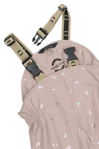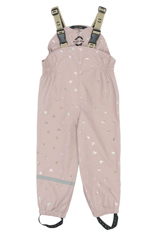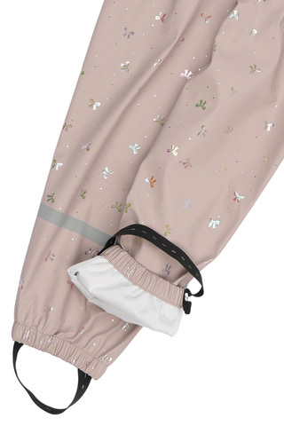 Dette flotte regnsæt fra Mikk-Line kombinerer funktionalitet og stil med sit fine Bow Foil All Over Print og diskrete glimmereffekt. Sættet består af en regnjakke og regnbukser med seler, som sikrer, at tøjet bliver siddende, hvor det skal – også når barnet leger og bevæger sig meget. Den aftagelige hætte beskytter mod regn og vind, og kan nemt tages af, hvis det ønskes. Jakken har blødt foer i kraven, hvilket gør den ekstra behagelig at have på, og de elastiske kanter ved ærmer og ben holder regnen ude. Regntøjet er fremstillet i slidstærkt polyurethan og polyester, hvilket gør det både vandtæt og nemt at rengøre. De påsyede reflekser øger synligheden på grå og regnfulde dage, så barnet trygt kan færdes ude. Sættet er ideelt til både børnehave og leg i haven, og det fine print med små sløjfer og glimmer gør det til et hit hos de små. Praktiske detaljer som justerbare fodstropper og trykknapper gør det nemt at tilpasse regntøjet til barnets behov, så det altid sidder godt og beskytter effektivt mod vind og vejr.