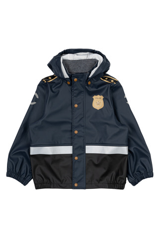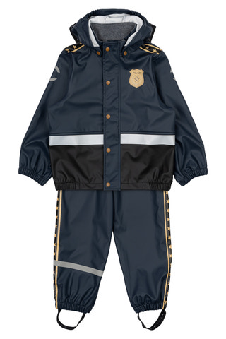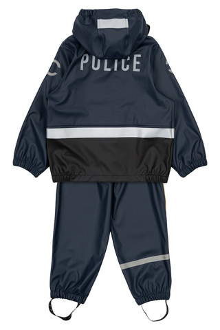 kundeservice@babysam.dkRegntøj Politi m. Seler fra Mikk-Line er det perfekte valg til børn, der elsker at lege og udforske – selv når vejret er vådt. Det flotte polititema med badge og detaljer gør regntøjet ekstra sjovt og motiverer til leg og fantasi. Sættet består af en jakke og bukser, hvor bukserne har praktiske seler, der sikrer en god pasform og holder bukserne på plads under aktivitet. Materialet er en kombination af polyester og polyurethan, hvilket gør regntøjet både slidstærkt og vandtæt, så barnet forbliver tørt og komfortabelt hele dagen. Jakken har en aftagelig hætte, elastik ved håndled og talje samt trykknapper, der gør det nemt for barnet selv at tage regntøjet af og på. Reflekser på både jakke og bukser øger sikkerheden i trafikken og ved leg i mørke. Regntøjet er let at rengøre og kan tørres af med en klud, hvilket gør det ideelt til daglig brug i institution eller hjemme. Med Regntøj Politi m. Seler får dit barn både funktionalitet, komfort og et sjovt design, der gør regnvejrsdage til en fest.