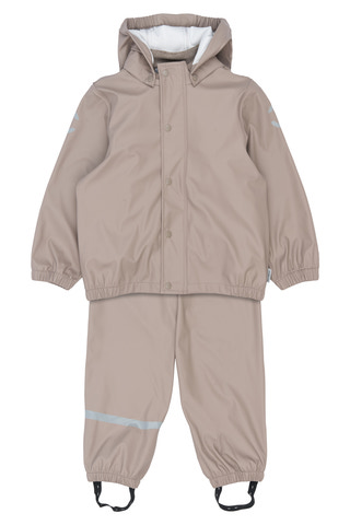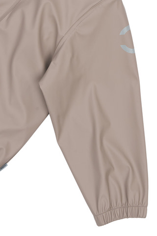 Praktisk og funktionelt recycled regnsæt fra mikk-line, der holder dit barn tørt. Regntøjet er udstyret med refleksdetaljer så dit barn kan færdes sikkert i mørket. Regnsættet er naturligvis både vand- og vindtæt. Sømmene er svejsede, hvilket forhindrer vand i at trænge igennem samlingerne. Buksen har fodstropper, som holder buksen under gummistøvlen. Regnbukserne har justerbare seler, tætsiddende elastik i taljen og et ekstra stykke stof der dækker både foran og bagpå kroppen.