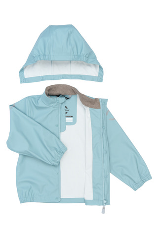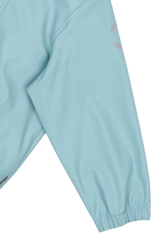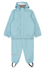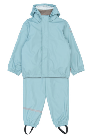 Praktisk og funktionelt recycled regnsæt fra mikk-line, der holder dit barn tørt. Regntøjet er udstyret med refleksdetaljer så dit barn kan færdes sikkert i mørket. Regnsættet er naturligvis både vand- og vindtæt. Sømmene er svejsede, hvilket forhindrer vand i at trænge igennem samlingerne. Buksen har fodstropper, som holder buksen under gummistøvlen. Regnbukserne har justerbare seler, tætsiddende elastik i taljen og et ekstra stykke stof der dækker både foran og bagpå kroppen.