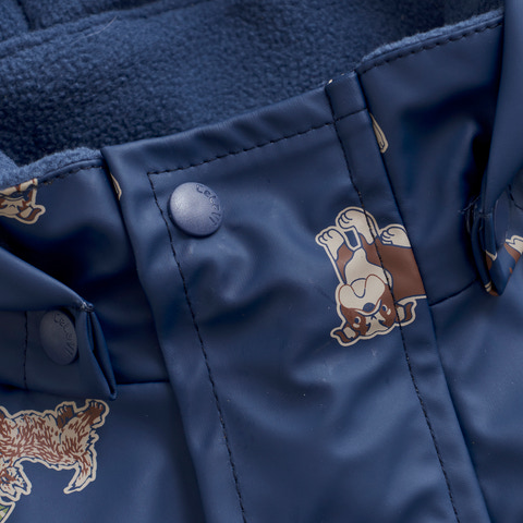 kundeservice@babysam.dkRegndragt med fleecefor fra CeLaVi – fremstillet i slidstærkt materiale med all-over print og lavet af genanvendelig polyester med PU-coating. Dragten er fuldt vandtæt med et testet vandsøjletryk på 10.000 mm og beskytter effektivt mod regn og rusk.