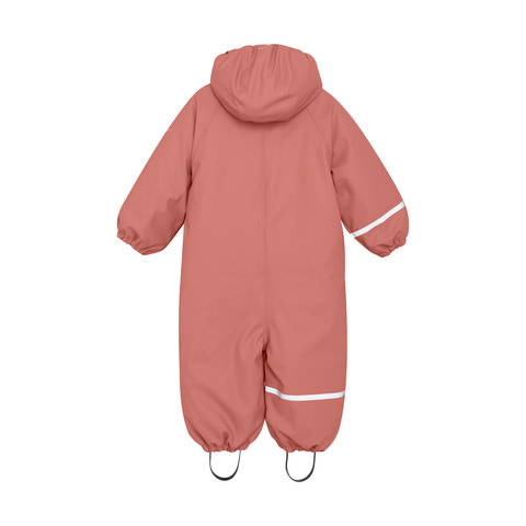 Justerbare gummistropper ved fødderne kan placeres under støvlerne og forhindrer, at buksebenene glider op. Refleksdetaljer flere steder på dragten øger synligheden i mørke, og et indvendigt navneskilt gør det nemt at holde styr på tøjet.
