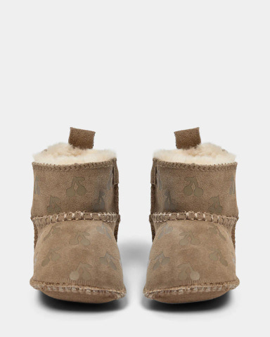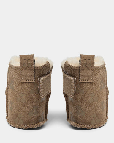 Renee Hjemmesko fra Sofie Schnoor Kids er den perfekte hjemmesko til små fødder, der fortjener ekstra komfort og varme. Skoen er fremstillet i blødt ruskind i farven dark sand og har et sødt kirsebærprint, der giver et charmerende udtryk. Den indvendige foring af uld sikrer, at fødderne holdes varme på kolde dage, mens den fleksible og skridsikre sål giver god bevægelsesfrihed og sikkerhed på glatte gulve. Hjemmeskoen lukkes nemt med velcro, så både børn og voksne hurtigt kan tage skoen af og på. Perfekt til brug i hjemmet, institutionen eller på besøg hos familie og venner.