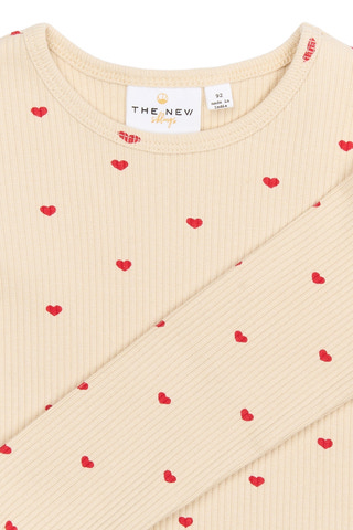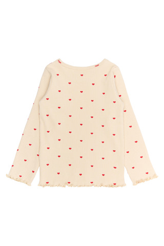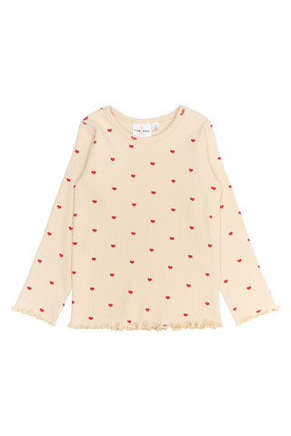 kundeservice@babysam.dkDenne langærmede T-shirt fra THE NEW Siblings er både sød og behagelig og har et dejligt hjerteprint. Designet med feminine salatkanter ved ærmerne og forneden, giver den et legende og charmerende look. Den slanke pasform gør den ideel til hverdagsbrug og lagdeling. Sæt den sammen med de matchende TNSTRhea Wide Rib Pants for et komplet og koordineret outfit.