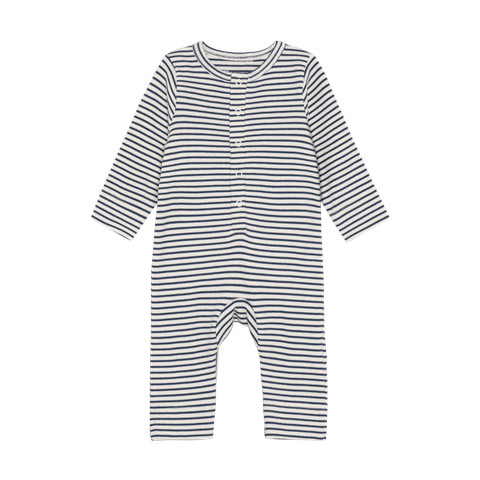 kundeservice@babysam.dkFixoni Rib Heldragt i Vintage Indigo er et skønt valg til de mindste, der kombinerer komfort og funktionalitet. Den bløde ribkvalitet sikrer, at dragten føles behagelig mod barnets hud og giver god bevægelsesfrihed. Det klassiske stribede design i indigo og hvid gør heldragten tidløs og nem at matche med andet tøj. Med trykknapper foran og ved benene er det let at klæde barnet på og af, hvilket er praktisk ved bleskift. Dragten har lange ærmer og ben, som holder barnet varmt både dag og nat, og er ideel til både leg og søvn.