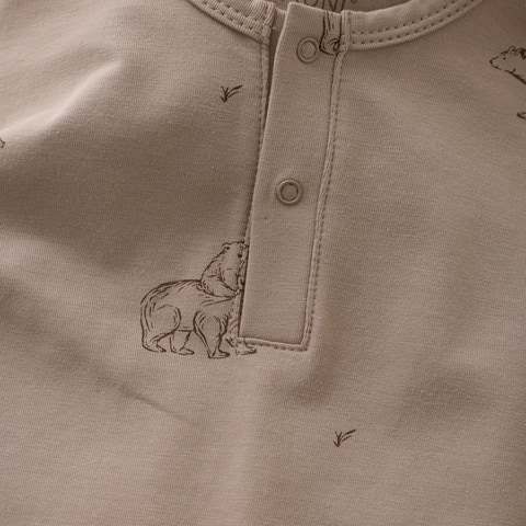 kundeservice@babysam.dkHeldragt med fødder og all-over-print fra FIXONI. Denne heldragt er designet med praktiske trykknapper foran og mellem benene, hvilket gør den nem at tage af og på – ideel til både hverdag og nattetid.