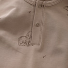 Heldragt med fødder og all-over-print fra FIXONI. Denne heldragt er designet med praktiske trykknapper foran og mellem benene, hvilket gør den nem at tage af og på – ideel til både hverdag og nattetid.