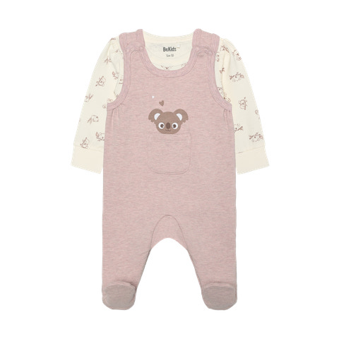 Sødt og praktisk sæt fra BeKids bestående af en blød body med omslag og matchende bukser med hængsler/sparkdragt. Knaplukningen gør bodyen nem at tage af og på, og bukserne har trykknapper for nemt skift. Fremstillet i blød bomuld, der er skånsom mod følsom babyhud – et perfekt sæt til både hverdagen og hyggelige stunder.
