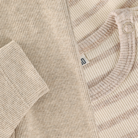 Hyggeligt ribbet sæt fra BeKids med en stribet bodysuit og ensfarvede leggings. Fremstillet i blød bomuld, der er skånsom mod barnets hud og giver en behagelig pasform. Perfekt til legesyge dage og nemt at matche med andre tøj i garderoben.