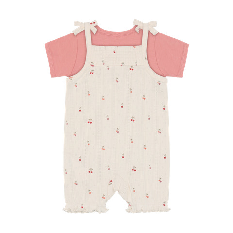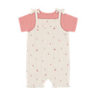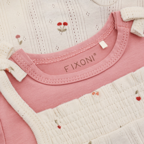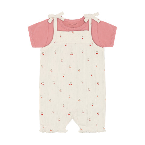 Dette søde sæt fra Fixoni består af en kortærmet body i en flot rosa nuance og en romper i farven Eggnog med et yndigt pointel-mønster og små kirsebærprint. Sættet er designet med fokus på både komfort og funktionalitet, så din baby kan bevæge sig frit og samtidig se skøn ud. Bodyen har bløde kanter og trykknapper i bunden, hvilket gør det nemt at skifte ble, mens rompers bindebånd på skuldrene sikrer en god pasform og et charmerende udtryk. Materialet er blødt og behageligt mod den sarte babyhud, og det lette design gør sættet ideelt til både hverdag og festlige lejligheder. Sættet er perfekt til de varme måneder, hvor barnet har brug for let og åndbart tøj, og det fine print og de delikate detaljer giver et ekstra pift til garderoben.