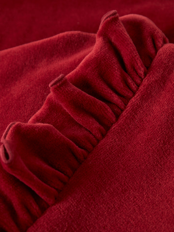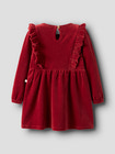 Saga Sag Kjole fra Lil' Atelier i farven Red Dahlia er en elegant og komfortabel kjole, der passer perfekt til både hverdag og festlige lejligheder. Kjolen er fremstillet i blød velour, som føles behagelig mod huden og giver et eksklusivt udtryk. De fine flæser på fronten tilføjer et sødt og feminint touch, mens den klassiske rund hals og lange ærmer sikrer en god pasform. Med den praktiske knaplukning i nakken er kjolen nem at tage af og på, hvilket gør den ideel til aktive børn. Den dybe røde farve gør kjolen til et oplagt valg til efterår og vinter, og den kan styles med strømpebukser og støvler for et fuldendt look.