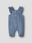 kundeservice@babysam.dkSage Denim Overall fra NAME IT er en charmerende og praktisk heldragt til de mindste. Den bløde denim i denim blue er pyntet med fine, broderede blomster, der giver et sødt og legende udtryk. Flæserne på skuldrene tilføjer et feminint touch, mens knaplukningen foran gør det let at tage dragten af og på. Elastikken ved benene sikrer, at overallen sidder godt og komfortabelt, så barnet kan bevæge sig frit. Perfekt til både hverdag og festlige lejligheder, hvor komfort og stil går hånd i hånd.