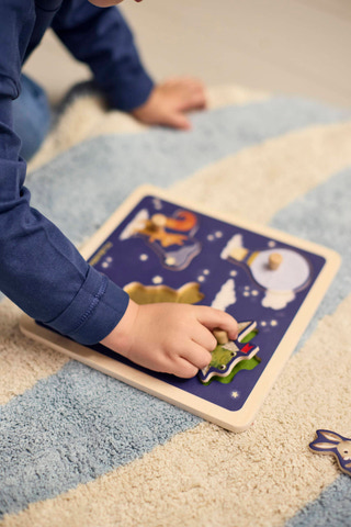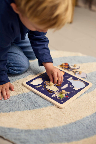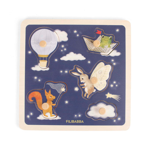 kundeservice@babysam.dkIntroducér dit barn til en verden af fantasifuld leg med et smukt sanse-puslespil i træ fra FILIBABBA. Puslespillet er designet til små hænder og forvandler legen til en sansefyldt rejse, hvor hver brik byder på en dejlig overraskelse. Det er mere end bare et puslespil - det er et eventyr i former, teksturer og tidlig læring.