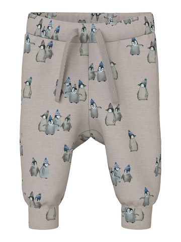kundeservice@babysam.dkSanuel Bukser fra NAME IT er et skønt valg til de mindste, der elsker komfort og sjove detaljer. Bukserne er lavet i en blød og strækbar kvalitet, som sikrer maksimal bevægelsesfrihed hele dagen. Den elastiske talje med snøre gør det nemt at tilpasse pasformen, så bukserne sidder godt uden at stramme. Det fine pingvinprint giver et legende og charmerende udtryk, der vil bringe smil frem hos både børn og voksne. Ribkanten ved anklerne sørger for, at bukserne bliver siddende, uanset om barnet kravler, leger eller slapper af. Et oplagt valg til hverdagsbrug og hyggestunder.